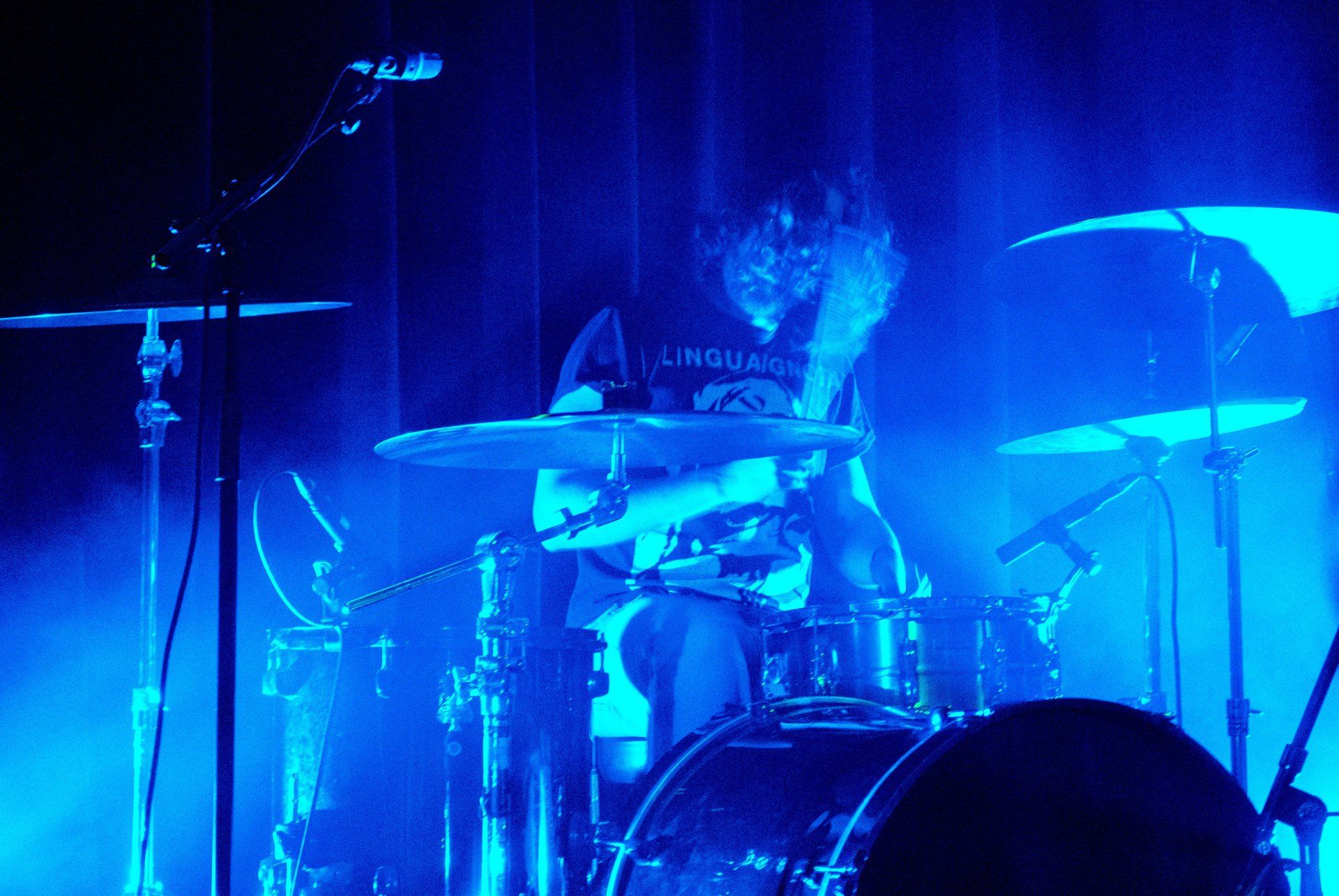 The night is filled with Katie’s crisp clear, cold airy vocals that resonate in the small yet packed room of Paradiso, where monstrous industrial guitars and sound effects of David and Mete screech your skin alongside Shane's pounding mechanical drums and Rob’s deep bass which rattles the floor and nevertheless, your bones, to drag you back in the present moment from which the dreamy melancholic melodies stole you away from. The dimmed lights, shattering at times, further engulfed the audience in Just Mustard’s meditative world.