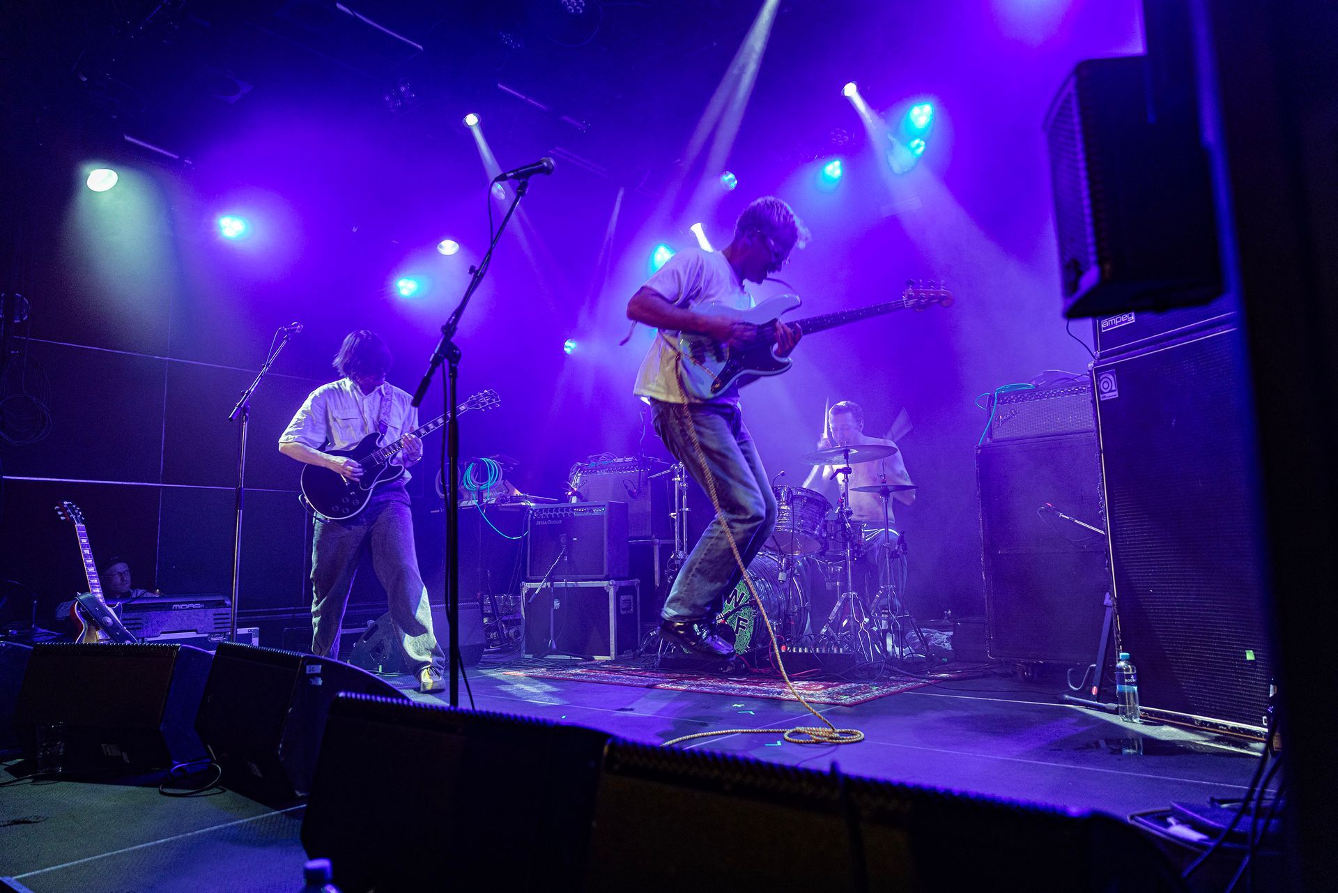 Daarna Frankie and the Witch Fingers, De line-up is stevig opgeschud: naast het originele duo Sizemore en Menashe staan nu drummer Nick Aguilar (ex-Slaughterhouse, Mike Watt), bassist Nikki Pickle (eerder in Vera met Death Valley Girls) en nieuwste aanwinst Jon Modaff (o.a. Hooveriii) achter de keyboards—al heeft hij in het verleden zelfs een tour als drummer met FATWF meegedraaid. Op de nieuwe plaat Trash Classic (2025) speelt Modaff een grote rol, en dat hoor je live: wave-invloeden en bijna robotische, Devo-achtige ritmes schuiven soepel aan bij de toch al turbulente, hyperactieve FATWF-sound. Ik had ter voorbereiding hun KEXP-sessie gekeken, dus de verwachting was hoog. Maar in Vera bewezen ze moeiteloos waarom ze zo’n reputatie hebben als liveband. Superstrak, gefocust, en met een energie die direct oversloeg op een enthousiast publiek. De moshpits volgden vanzelf.