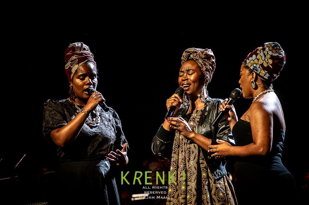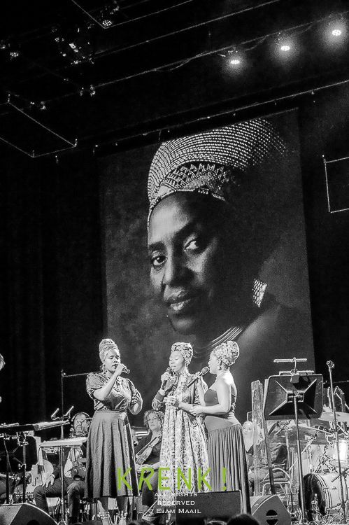 Maar het absolute hoogtepunt – hét kippenvelmoment – kwam tijdens een a capella eerbetoon aan Miriam Makeba. Terwijl Makeba’s gezicht op het scherm verscheen, zongen Ntjam Rosie en haar backingzangeressen zonder begeleiding. Het was magisch. Het leek alsof Makeba zelf even aanwezig was in de zaal.