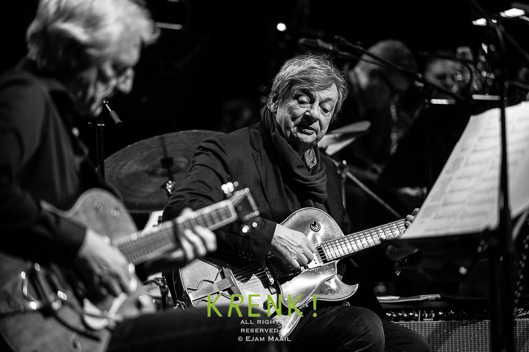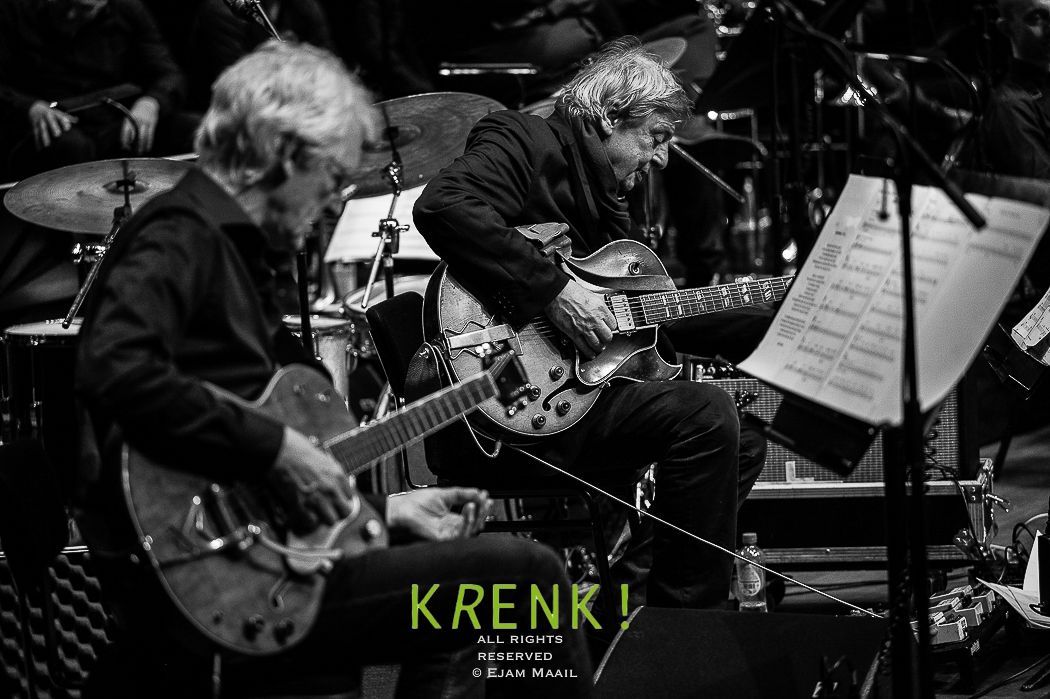 Philip Catherine en Peter Tiehuis: twee van de grootste gitaarhelden van de lage landen delen het podium met de Metropole Orkest Big Band. In het Verkadefabriek in Den Bosch was de laatste van een reeks optredens van deze twee gitaar helden uit de lage landen. Het optreden bestond uit twee delen voor de pauze een optreden van Jazz grootheid Philip Catherine met zijn eigen stukken . mooi rust en heel jazz en vol met plezier aan elkaar gepraat door de gitarist zelf. Zijn unieke stijl en klankkleur en zijn ongetemde inzet voor de muziek zijn van onmiskenbare invloed geweest op de ontwikkeling van de Europese jazz.De Belgische gitarist Philip Catherine staat al sinds de jaren zestig aan de internationale jazztop. Hij speelde met grootheden als Chet Baker, Tom Harrell, Stéphane Grappelli, Larry Coryell, Dexter Gordon en Charles Mingus. Na de pauze was het de beurt aan Peter tiehuis . Zijn muziek lag meer in de jazzrock fusion achtig hoek en was ook iets harder qua sound maar ook heerlijk swinging Stukken uit zijn cd werden gespeeld de laatste stuk en toegift speelden de twee gitaar helden samen een stuk een staande ovatie was er na afloop ..