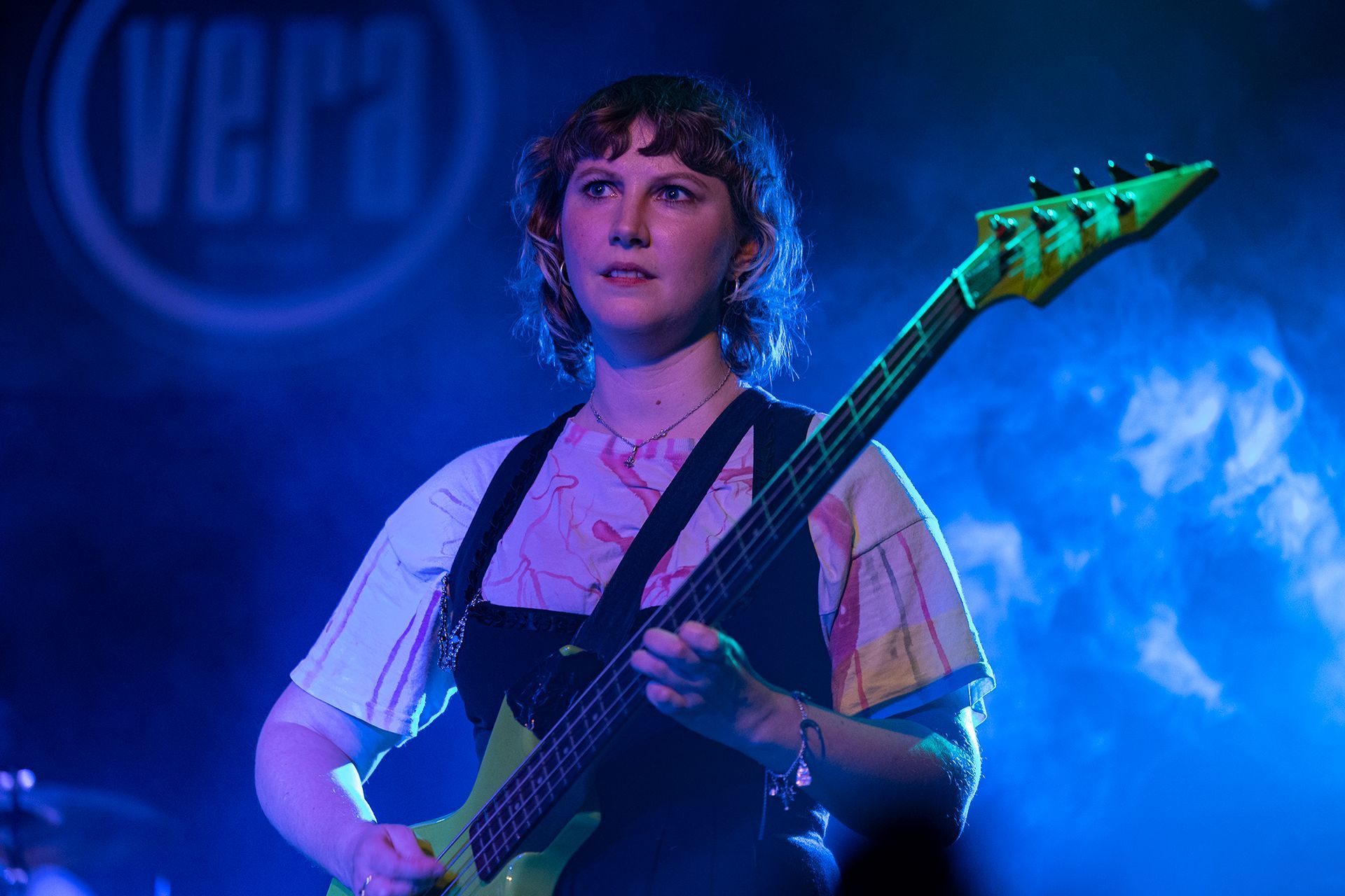 Wie naar Es luisterd zal ongetwijfeld al snel vallen voor de catchy bassriffjes en uitspattende synthesisergalmen. De bassiste lijkt bijna in gedachten verzonken, maar haar geluid staat pal op de voorgrond met de zang en de synths. Synths die ergens klinken alsof ze uit de jaren 80 popmuziek komen en ergens klinken alsof ze uit een vieze kelder komen, kortom perfect voor postpunk. Dan is er nog niet gesproken over de drummer die vol overgave het stevige skelet bied voor de explosieve nummers. De zangeres - met de beste bedoelingen schreeuweres te noemen - is ondertussen de eyecatcher van het podium. In het groen steekt ze goed af tussen de band terwijl ze het podium eigen maakt en met elk nummer zelfverzekerder haar teksten vol overgave door de zaal laat gaan.