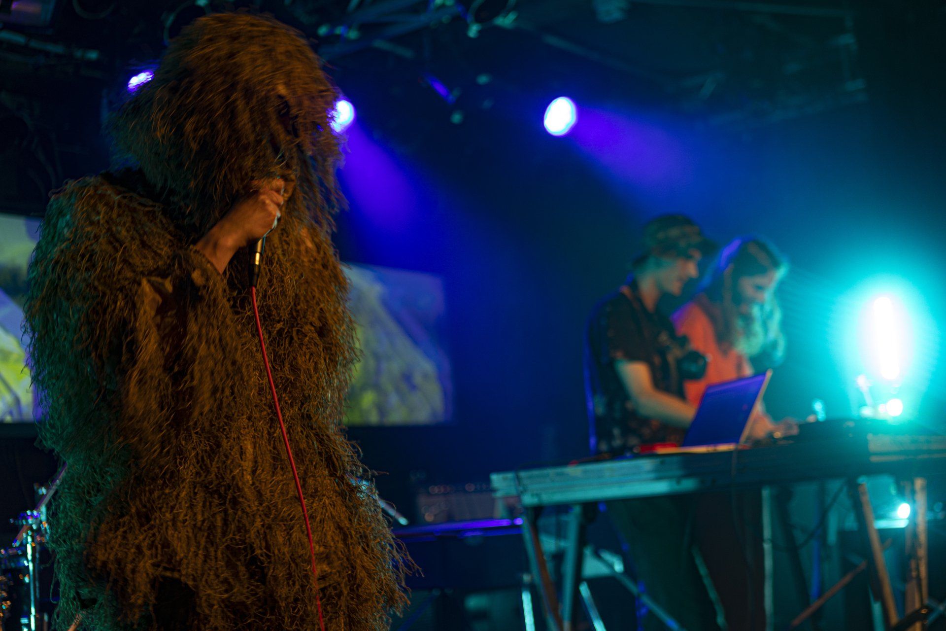Het begint met dj's die met gebruik van opzwellende electronica en robotische voice overs Hugo introduceren, die al verstopt in militaire camouflage (ghilly suit) op het podium zit. Of de teksten veel betekenis hebben is maar de vraag, maar ze worden met genoeg agressie in de mic gegooid dat die emotie goed overkomt. Bij de nummers met minder emotie lijkt het gewoon puur om de lol te gaan. Dit gaat over een beat die het best te beschrijven is als een mix tussen dubstep en drum and bass, gebracht door Klokpack6ix. Een kunst- en -muziekcollectief die tevens achtergrond projecties gebruiken die perfect op de maat meebewegen en wellicht het creatief hoogtepunt van de show zijn. Naarmate hij doorgaat word Hugo wel aanzienlijk beter en vloeiender in zijn flows. Daarbij voelt hij zich vrij om de spot met zichzelf en het publiek te drijven, wat de attitude is die opkomende muzikanten zeker nodig hebben. Wellicht was dit niet hun beste optreden of voor het juiste publiek, maar de humor, beats, energie en creativiteit beloven veel. Dus Hugo, ga nog niet remmen.