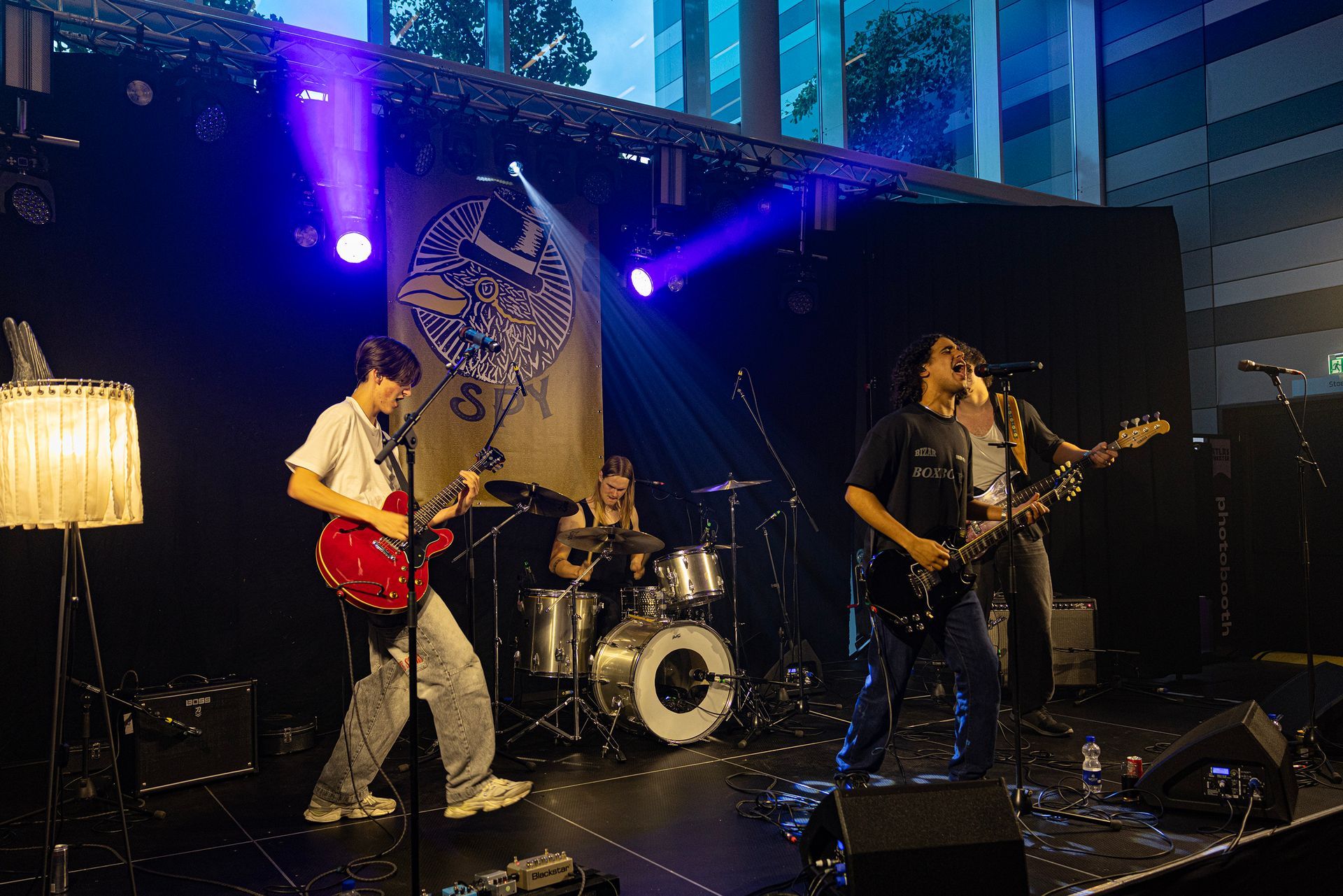 De energie zet door met Bliss in de foyer. Een krachtig viertal dat ruigere gitaarpop speelt dat het op menig festival goed zou doen, zo ook in hier op Spy. De sfeer zit ee goed in en vol vrolijkheid razen de jongens door van nummer naar nummer, zonder stiltes.