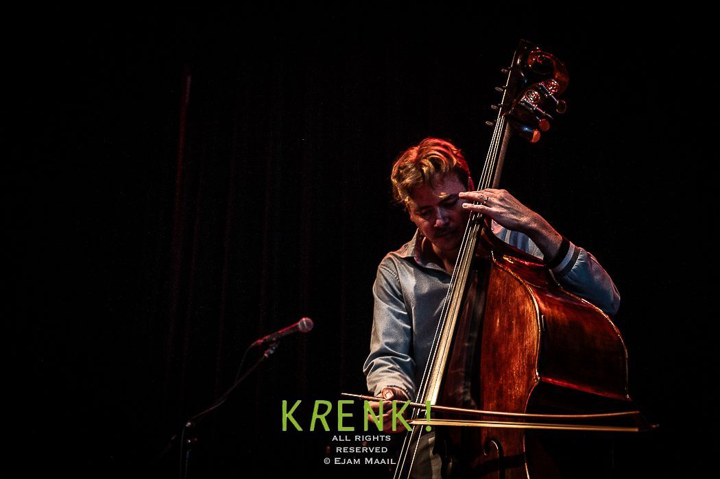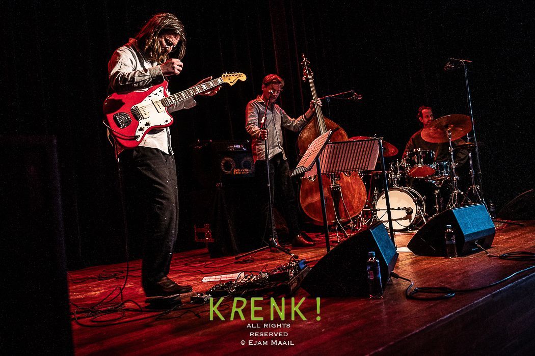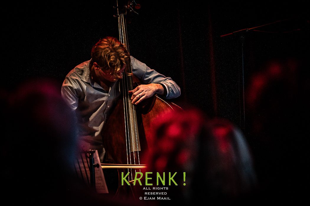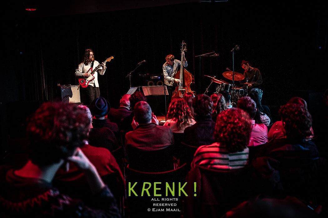 De gezellige zaal Club Nine was redelijk gevuld met liefhebbers en kenners . Het trio van contrabassist Thomas Pol speelt niet het alledaagse jazztrio muziek . Pol had hulp van twee musici die bekend stonden om hun avontuur in spel . Voor zijn huidige trio selecteerde hij drummer Jamie Peet, met wie hij al meer dan tien jaar samenwerkt, en gitaarwizard Jelle Roozenburg. Hoe ik het muziek omschrijf .. het gitaar spel doet me een beetje denken als van scofield/scott henderson/ben monder ..gitaristen die echt een rafelig randje hebben in hun spel en echt out of the box denken waardoor het muziek een andere dimensie krijgt dat doe Jelle dus ook zonder deze mannen te imiteren hoor je duidelijk Jelles handschrift.. Jamie peets spel is wat rustiger dan wat ik van hem gewend ben maar nog steeds klinkt het avontuurlijk. Contrabassist Thomas Pol kan alle kanten op met zijn nieuwe trio, van swing tot rock en vrije impro. Zijn nieuwe composities zijn geïnspireerd door twee havensteden die veel te bieden hebben op muzikaal gebied: New Orleans, waar hij een tijd doorbracht, en zijn huidige woonplaats Rotterdam. De gitaar speelt een belangrijke rol in de muziek en brengt de nodige vrijheid met zich mee.